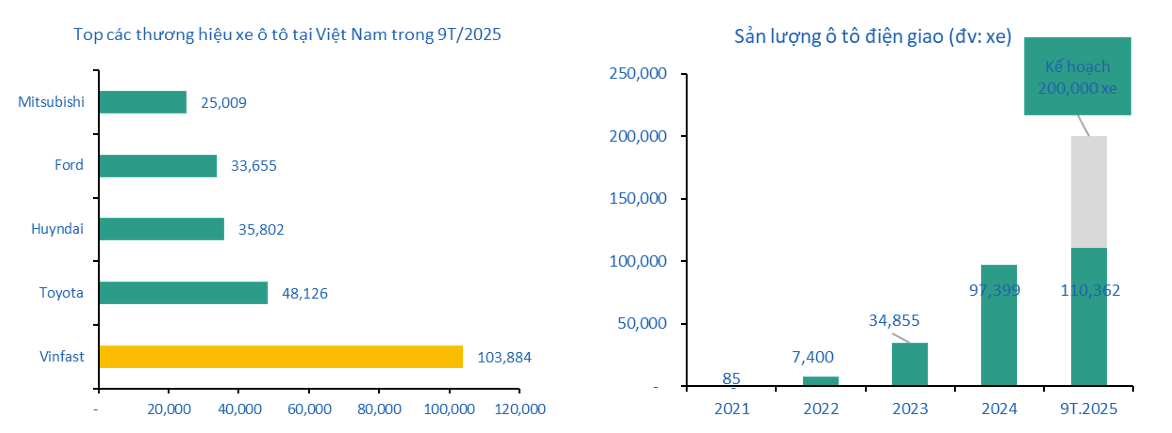 2025年1〜9月の実績では、VinFastは世界で約11万300台の電気自動車を納車し、前年同期比で149%増という大幅な伸びを記録しました。販売台数のうち約94%はベトナム国内が占めており、ローカル市場での存在感は非常に大きい状況です。